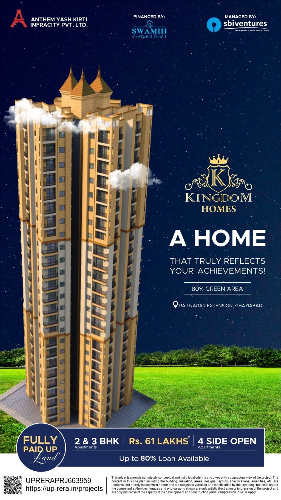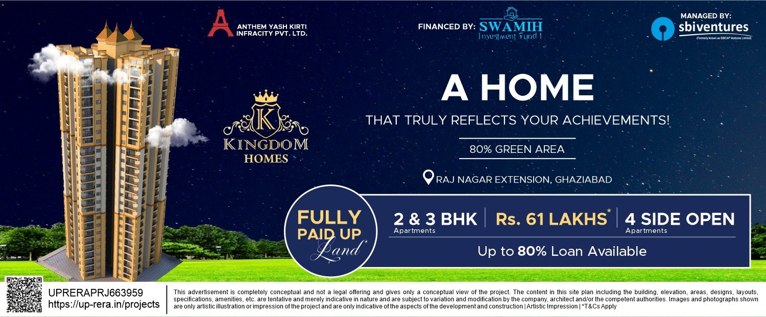 In many ways, a home is a true reflection of our success and values. Every corner of our home must reflect our lifestyle and our beliefs. Which is why, we have taken utmost care in designing Kingdom Homes in Raj Nagar Extension – to give you a true experience of a classy living that you may enjoy everyday. Right from super prime location to marvelous architecture to neo-modern design; we have created this modern residential haven keeping your family and aspirations in mind. A life of satisfaction & fulfillment awaits you!